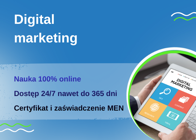 Digital marketing – kurs online z certyfikatem wraz z ćwiczeniami obejmuje 30 godzin edukacyjnych, ale rzeczywisty czas nauki zależy tylko od Twojego zaangażowania.